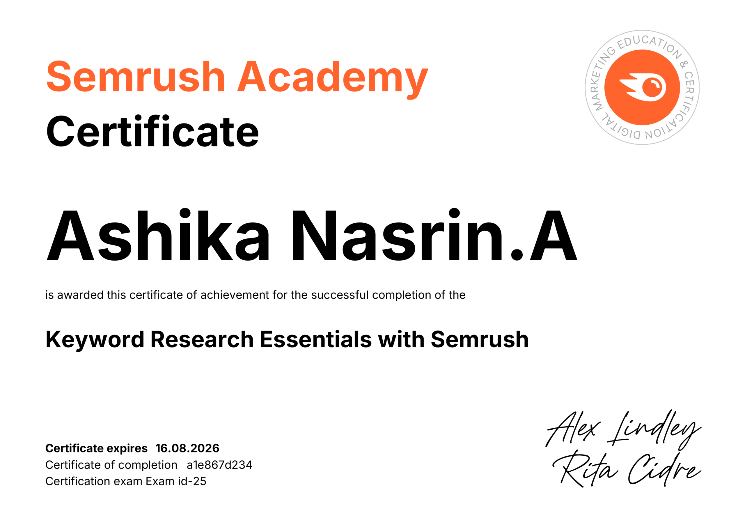 Nasrin does her work exceptionally well. Her expertise in digital marketing, especially in SEO and social media, helped us expand our reach and achieve steady growth. Truly she is the best digital marketing strategist in Calicut.
